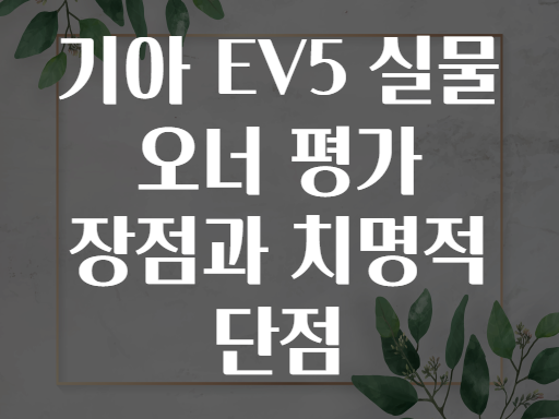 기아 EV5는 기아의 새로운 컴팩트 전기 SUV로, 가격 경쟁력부터 디자인, 주행 성능까지 많은 기대를 모으고 있죠. 하지만 좋은 점만 있는 건 아닙니다! 오늘은 실물 체험 오너 시각에서 기아 EV5의 장점과 치명적인 단점을 낱낱이 파헤쳐볼게요! ✨