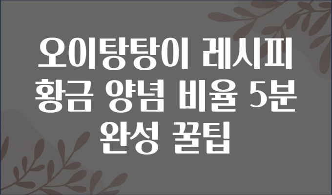 ✅ 마무리: 오이탕탕이까지 5분! 성공 레시피 핵심 정리