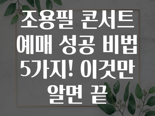🎤 조용필 콘서트 예매 성공 비법 5가지! 이것만 알면 끝💥