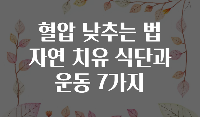 🔢 혈압 낮추는 자연 치유 7가지 실천법 정리 🌟