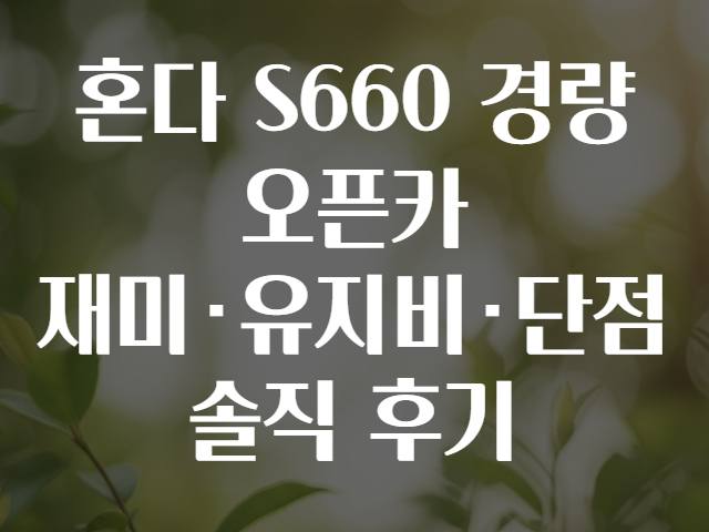 🏁 운전 재미, 유지비, 그리고 단점까지! S660 솔직 후기